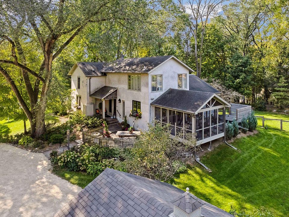Welcome to this architect designed artisan two story home with an amazing vibe and nestled within a lovely setting on a large lot with mature trees and perfectly positioned for privacy and outdoor entertaining. Creativity abounds with the airy and thoughtfully designed interior space. The house underwent significant remodels both inside and out in 2015 and 2020 through 2023. Timeless elegance with light-filled spaces tailored for today's lifestyle. A bespoke home meticulously renovated and refreshed. New and beautiful chef's kitchen featuring white oak flooring, expansive center island with carefully curated finishes and fixtures overlooking the great room with panoramic windows, vaulted and beamed ceilings, gas fireplace and oak hardwood floors. The main floor also includes a separate dining/morning room with banquet and vintage iron gates, bedroom with walk-in closet, full bath and generously-sized den/family room. A beautiful stairway off the foyer leads you to the second floor featuring stunning white oak, quarter-sawn plank flooring. The second floor is defined by two separate wings; the primary bedroom suite and two additional bedrooms, full bath plus laundry. The distinctive primary suite is light-filled with banks of windows, custom built in closets and cabinetry, and enhanced with a truly remarkable ceiling with beautifully designed moldings and luxurious bath. Outdoor living areas include a spectacular screened porch with reclaimed natural wood plank flooring leading to the adjacent deck with hot tub. A beautiful property in a magical setting that seamlessly blends indoor and outdoor space. Extensive and professional landscape design; fully irrigated. Located just minutes from downtown Wayzata and the boardwalk on Wayzata Bay, plus easy access to downtown Minneapolis and the airport.