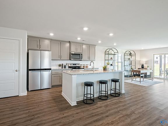The T2950 plan- 3 bed (optional 4th), 2.5 baths and 2 car garage! Our Lifestyle Triangle joins together the living room, dining, and kitchen to create an open concept. Kitchen features beautiful backsplash, granite countertops and finished w/stainless steel appliances! Secluded master bedroom w/ en suite bath, double vanity and large master closet. Brick exterior, optional covered back patio on a beautiful lot. Come check out the Charleston community which features great lots, convenient access to Highway 72 and just 15 minutes away from Huntsville! 100% FINANCING. BUILDER PAYS ALL CLOSING COST WITH SILVERTON MORTGAGE.