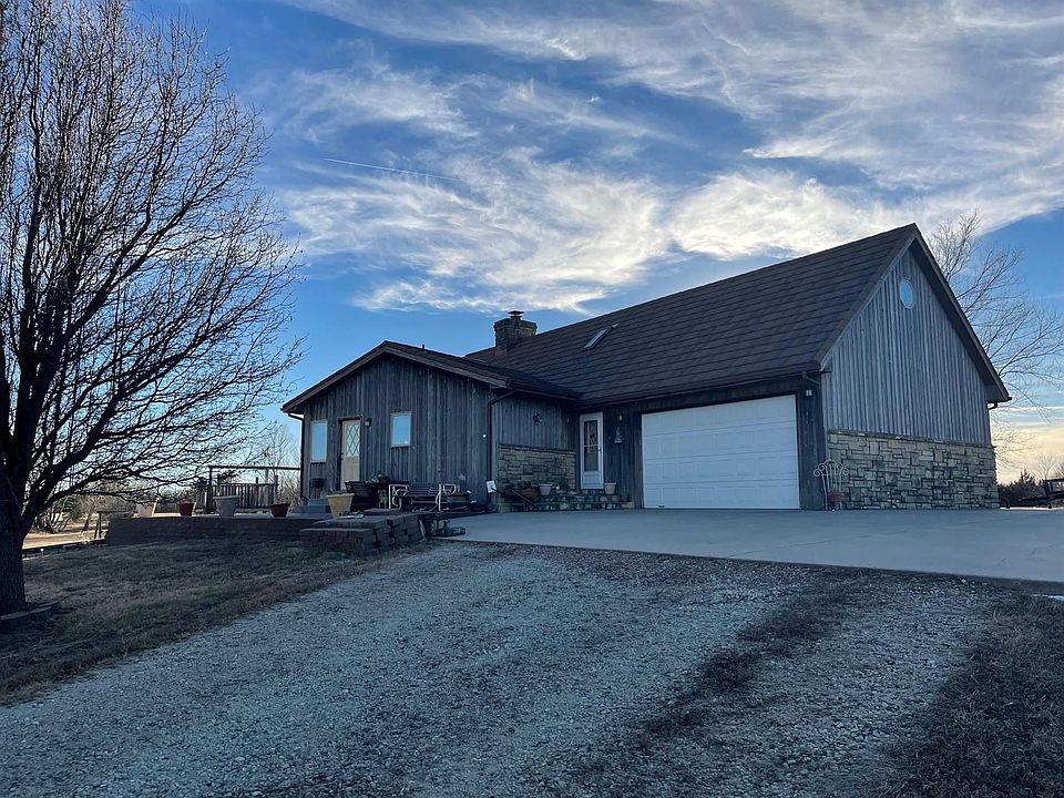 Custom built burm and passive solar home built on just under 5 acres with 3 BR 2 BA 2 Car attached and a 40X50 shop building. Main floor offers a large vaulted living room with wood burning fireplace (with blowers that also feed the kitchen) and a separate main floor family room. and a 3/4 bathroom. Kitchen sports a center island with eating bar, gas range, walk in pantry and dining space. The tile floor in the kitchen and two of the downstairs bedrooms have heated floors. The large upstairs bonus room would be great for playroom, hobby room or exercise room. The finished walk out basement includes the large master bedroom, 2 more bedrooms and the second full bathroom. There is plenty of storage throughout this home. The shop building has electricity and lights, including a 220 outlet for power tools. Water source heat pump and high efficiency water heater. The steel roof comes with a lifetime warranty. New pressure tank for the well. This property offers a pond, mature trees and playset. Animals are allowed on the property. Don't miss this interesting home on acreage - call to schedule your showing today!