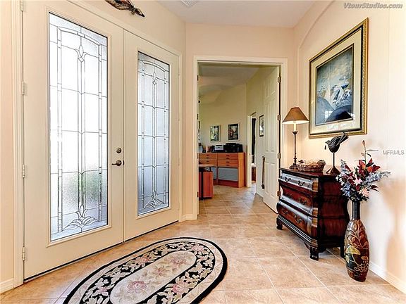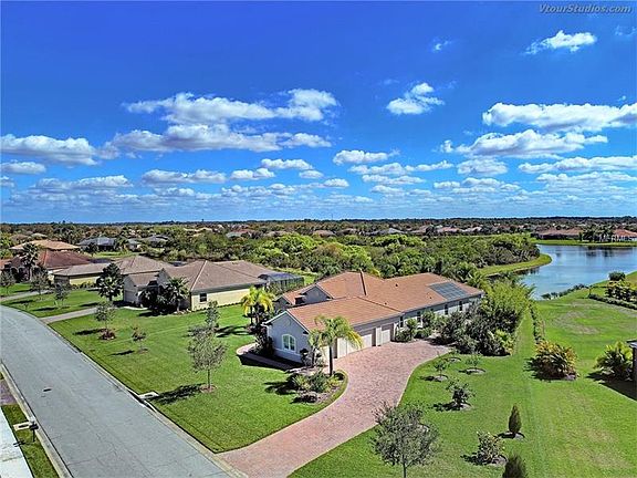 An invitation to spacious living! This meticulous pool home nestled in Country Meadows offers a functional, open floor plan for easy living & gracious entertaining. Built in 2011 by Medallion Homes as a larger & upgraded version of the Barbados model. With lush landscaping, serene water views, paver driveway & a 4 car side entry garage, this home is an exceptional find. The interior offers over 3,400 sqft of luxury w/ 4 bdrms, 3 baths, den/office, large bonus rm, mud rm & huge laundry rm. Filled with upgrades, including 18" porcelain tile, tray ceilings, central vacuum system, energy efficient windows, & a high-end security system w/centrally monitored camera system. Enjoy cooking in the stylish kitchen that opens to the spacious family room. Upgraded wood cabinets, high-end granite countertops, stainless steel appliances, center island, & a huge walk-in pantry create a harmonious balance of style & functionality. Serve meals in the formal dining room, or casually in the breakfast nook with aquarium windows. Wake up to water views from the master bdrm with sliders that open to the spacious lanai. The Master bath offers a soaking tub, dual sinks w/ upgraded granite tops, solid maple cabinets, & a huge walk-in shower. The large bonus rm, office & bedrooms offer plenty of space & versatility. Enjoy sunny days on the extended covered lanai overlooking the solar heated pool. Located in a wonderful community with low HOA fees, no CDD fees, & in close proximity to great schools, I-75, & nearby shopping & dining.