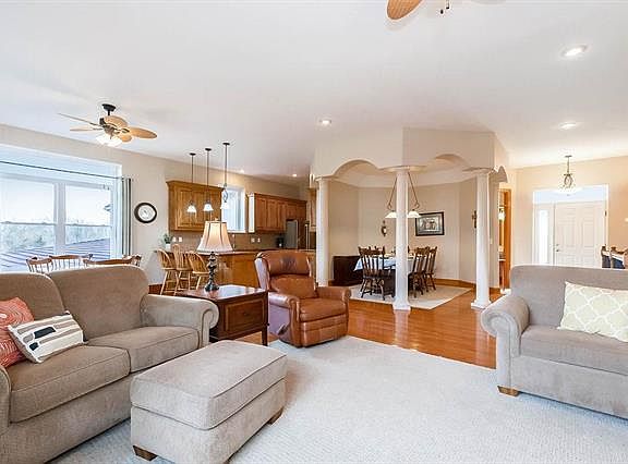 Picture perfect & nestled on 5 acres! Tile roof! LS Schools! Inviting open floorplan, hrdwds, &tons of natural light on the main flr! Dining w/columns, kit w/granite counters, pantry! Master suite walks out to deck, bath w/granite vanities, whirlpool tub, walk-in tiled shower, his&her WI closets! Rec rm in LL w/wet bar, 2nd full bath, 2 BRs &non-conform 4th BR! Inground pool-only 5 yrs old, plus large deck! BONUS 4th garage for workshop/boat. Enjoy country living w/just a short drive to town! NEWER HVAC! HVAC is only 1 year old. All pool equipment included! Sunsetter Awning stays. Unincorporated area....with great schools! Property lines marked are approximate. Plat available in supplements.