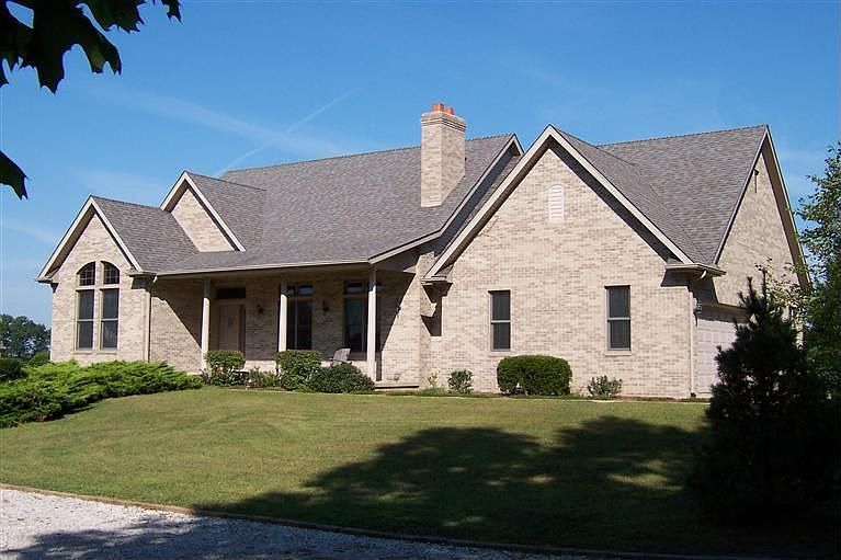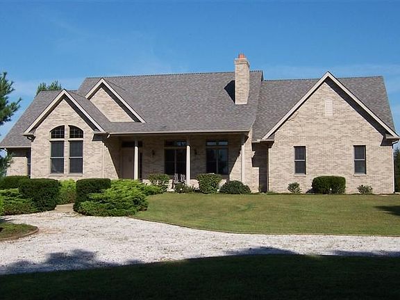 Are you looking to get away from it all? Room to roam and country breezes await you in this 4198 fin. sq. ft. all Brick Ranch on over 3 Acres. Efficient floor plan w/10' & 11' ceilings throughout main floor. Two brick woodburning fireplaces make it cozy for White Christmas dreams. Living room open to kitchen- great for entertaining. Versatile 4-seasons room is a perfect spot for house plants or your morning cup of coffee. Spacious master suite w/whirlpool tub & separate shower. Doors from Master Bedrm & Kitchen open to large deck & expansive backyard. 2 convenient stairways lead to finished daylight basement- another great place for family fun or entertaining with rec room w/fireplace, bar & game area, theater rm. and office or craft rm. 1/2 bath in basement is roughed in for shower should you want to expand it. Hobbyist or Horse Lover's delight-30' x 40' Pole Barn. Owner has planted over 60 trees since 1997 adding ambiance to an already beautiful country estate. Home Warranty included
