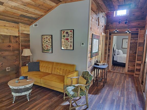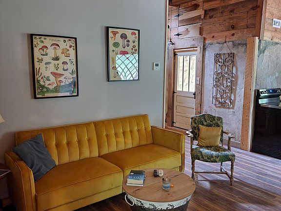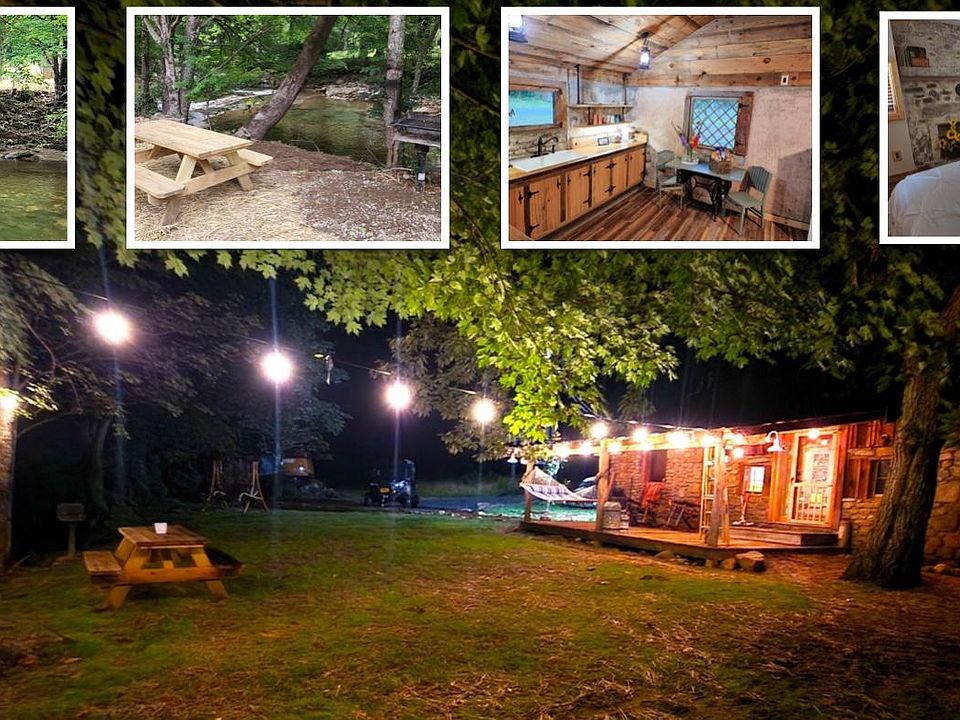 1800's Stone Cottage with the river in the front yard. Sit on the front porch in this mountain hollar cottage - (easily accessed - on main road). Fish, tube and swim in the head waters of the Pigeon River. High speed internet available while you work from home. Fire-pit, park grill and picnic table out front next to the river. Close to the many waterfalls, trails, the Blue Ridge Parkway, Waynesville, Canton, Asheville and Hendersonville. This cottage was #1 on Airbnb and received 100% 5 Star reviews. It comes completely furnished (but can be unfurnished). Central heat / air and modern updates throughout. Smoking outdoors only. Parking for up to 3 vehicles. Trash dumpster on property. No car repairs nor disabled vehicles on property. Propane for stove and additional heat supplied at tenant's expense and serviced by Linton's Propane. Fish, play, tube, kayak in your front yard. Enjoy your private grill and fire pit along the banks of the river. Hundreds of miles of trails and waterfalls nearby and minutes to the Springdale Golf & Country Club. Private parking and level grounds. Tenant is responsible for gas and electric. Water is from well. High Speed internet available. Pets may require additional deposit. No smoking in-doors.