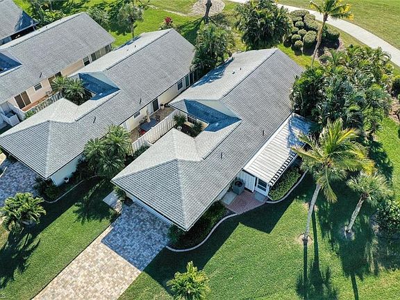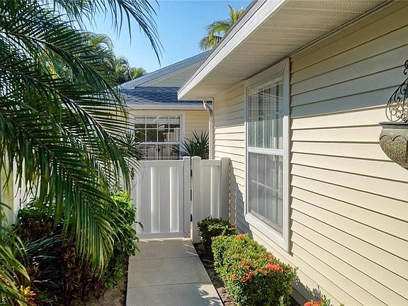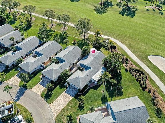 This 2 bedroom + den/2bath cottage w/2 car garage is sitting on one of the best locations in Olde Millpond! South facing golf course views and wide open space on west side of the house offer so much light and privacy and seldom found in the villa homes. Updated kitchen with granite countertops, tile flooring throughout the main living area, tile flooring in the garage and a huge 250 sq.ft. lanai that is under air but not included in the tax records provide so much more living space to enjoy those views!! 186 slip deep water Marina with slips available for lease or purchase. Master Association $1,350 a year plus $438 initial fee. Condo Fee $500 monthly. Some amenities herein available but not offered. Sq. Ft. approximate or from Lee County. Close to beaches, shopping, dining and RSW airport.