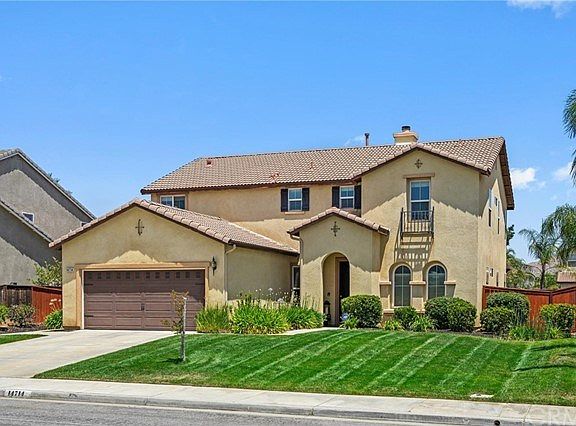 Are you looking for a gorgeous home with a main level bedroom, large loft, and 3 car garage? This exceptional property offers inviting curb appeal with a manicured lawn, Mediterranean-inspired exterior, and a covered entryway. Enjoy an open floor plan perfect for entertaining with a flexible design you can custom fit to your lifestyle. From the entryway, you have the formal dining room or living room with ample wall space for artwork. The kitchen offers a butler's pantry/coffee & tea bar, additional pantry, center island, granite countertops, breakfast bar, and separate dining room with a sliding glass door to the patio. The kitchen opens to the family room where you can enjoy the toasty fireplace & media niche. The main level bedroom is perfect for in-laws or overnight guests. Upstairs you have a spacious loft/game room with a storage cabinet/display ledge plus a tech station with a built-in desk that is ideal as your home office space. Relax in the large master suite with an ensuite bathroom, double sinks, double closets and a privacy toilet door. This home was painted inside within the last 2 years and has beautiful tile flooring and carpeting. You will love the new Alumawood® patio cover with ceiling fan lights! Have fun BBQs all summer long in this backyard with a healthy lawn, wide side yards and plenty of space for dogs to run. Lots of room for your cars and workshop in the tandem 3 car garage. We are convenient to the Riverside University Health System Medical Center and Kaiser Permanente Moreno Valley Medical Center. Take a closer look at this exceptional property today!