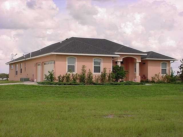 Large modified Mark Cahill 'Capri model'with an outstanding floorplan that has a terrific flow, 3 bedrooms with den and a 300 footage bonus room would make a super 2nd master bedroom,billard or playroom or could easily be 5 Bedroom house. Home features a large living room and family room. Formal dining room has a beautiful wet bar with pass through. Sunny breakfast nook with a mitered window just off the large kitchen with cherry cabinets,corian counter tops,seamless sink and a ton of counter space. The master suite is private and expansive with walk in closets and grand master bath complete with roman shower. All of this situated on 5 serene acres with a 3 car garage,screened lanai,sprinkler system,all fenced and ready for your animals. Lease option possible.No deed restrictions.