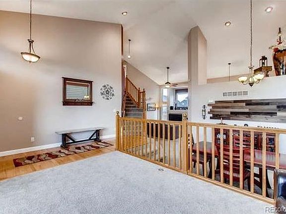 Check out this great family home with its amazing open floor plan, and its incredible soaring ceilings. It has 3 bedrooms and 2 full bathrooms upstairs, while the main floor has a fourth bedroom with its own full bathroom right outside the door. The finished basement is an amazing layout with another full bathroom and office with a closet that can be used as another bedroom. Kids will love the tree house in the fabulous backyard, and the sand box. Adults will love the stainless steel appliances, basement pool table and the fabulous pergola. The home also features a two car garage with plenty of cabinet space for storage and a spacious shed in the backyard. This home is located in The Haven, one of Thornton's premier pool communities. Walking distance to Silver Creek Elementary, Rocky Top Middle School and The Star gate gifted and talented charter school. This is one of the best locations in Thornton, shopping centers galore. The Orchard Town Center and Denver Premium Outlets offer a wide variety of food, drinks and shopping. The new Trail winds recreation center is also just a short drive away. Easy access to I-25 and E-470. The Summit and Top Golf are very close by, offering arcade, laser tag, bowling and golf. *Note: Flooring on the first floor including kitchen will be updated to vynil before move in date (5/4), upstairs carpet will also be stretched. Tenant responsible for gas, electric and water.