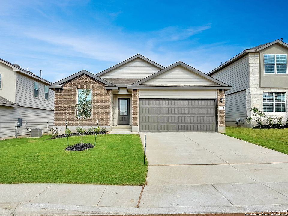Step into The Brown floor plan at Stonehill in San Antonio, TX, a single-story home featuring 3 bedrooms and 2 bathrooms. The Brown also offers 3 classic front exteriors, a 2-car garage and 1651 square feet of comfortable living. The Brown features classic design and modern features that blend seamlessly to create the perfect everyday space. A welcoming foyer leads to a formal dining room with large windows and a connecting doorway to the galley kitchen. The kitchen includes plenty of cabinet storage, quartz counter tops, subway tile backsplash, stainless steel appliances, and a gas cooking range. A large kitchen island with a deep, single basin sink overlooks the spacious living room. The large first bedroom suite is located off the family room and features a double vanity sink, separate tub and walk-in shower and a private water closet. You'll have all the space you need to get ready in the morning with a large walk-in closet. Spacious secondary bedrooms with large closets and quality carpet flooring, a second full bathroom with plenty of natural light, and a utility room are conveniently located off the living room. Head out the back door and relax on your rear covered patio (per plan) and enjoy full yard landscaping and irrigation. Additional features of The Brown include tall 9-foot ceilings, 2-inch faux wood blinds throughout the home, luxury vinyl plank flooring in the entry, family room, kitchen, and dining area, ceramic tile in the bathrooms and utility room, and pre-plumb for water softener loop. You'll enjoy added security in your new home with our Home is Connected features. Using one central hub that talks to all the devices in your home, you can control the lights, thermostat and locks, all from your cellular device.