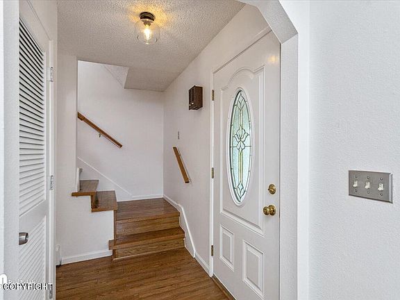 This well maintained home has a spacious floorplan with all bedrooms upstairs. Enjoy the multiple living spaces, wood burning stove, mountain views and updated kitchen w/stainless steel appliances. Sunny lot w/mountain views, shed and large paved parking for toys and RV. Strategically position for a fast commute to JBER/Anchorage. MIL floorplan with walkout basement.Welcome Home!