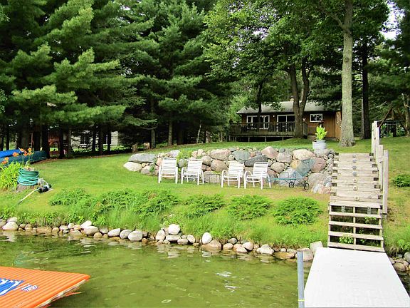This property has what everyone is looking for: 200 feet of shoreline on Big Stony Lake with gentle elevation and hard sand lake bottom. No huffing and puffing to get to the beach and back. Quaint 2 bed 1 bath seasonal cottage with large lake facing deck. Could be converted to year round. Wood burning brick fireplace in combined living/dining room. Also, washer & dryer closet and large full bathroom. Guest space over 2 ½ car garage sleeps many. Beautifully landscaped and treed one acre lot that offers many outdoor activity spaces, retaining wall/patio by water’s edge and generous fire pit area that will accommodate large gatherings. Many potential ways to expand living structure; variance approved with conditions. Includes L-shape dock with bench. Enjoy all the Park Rapids area has to offer (fishing, hunting, ATV & snowmobile trails, biking, hiking, & abundant fun activities). Located in lake country with numerous lakes nearby and 30 miles from Itasca State Park.