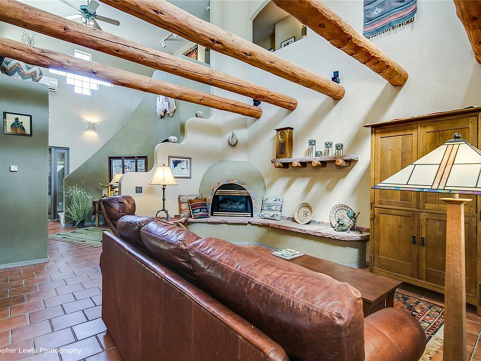 One-of-a-kind Southwestern style home is flooded with natural light and boasts authentic architectural details that include vigas, vibrant accent colors, curved walls & archways, and incredible outdoor spaces on ONE ACRE in Quail Hill. Distinct, formal living & dining spaces encompass the family room with cozy gas fireplace, vaulted ceiling, and exposed beams. The kitchen features hand-scraped hardwoods, ample cabinetry, granite counters, and an island with seating. Wall-to-wall windows provide views of the backyard oasis. A sunny breakfast nook adjoins. There are 2 bedrooms and 2 baths + laundry on this level. Upstairs, a spacious master has a walk-in closet and private deck with expansive views plus direct access to a shared 5-piece master bath and secondary bedroom. Other notable features include a walk-out basement awaiting your finishing touch, 3-car attached garage, a casita w/electrical for storage/workshop, and breathtaking grounds, gardens and patios perfect for entertaining.