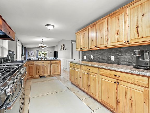 This is truly your dream ranch! Ready to welcome you, your horses and business sitting on 5 Acres! Stunning horse property offers 5 bedrooms 3 bathrooms, which is the perfect blend of country living with modern conveniences. Step inside to a HUGE country kitchen featuring hickory cabinets, stainless steel appliances that incudes two full-size ranges, a walk-in pantry, barn wood accents, and butcher block counters, perfect for cooking and entertaining. Travertine flooring in the kitchen and dining room. Hardwood floors flow throughout the main level. Living room has bay window. So much natural light throughout the whole house. Sliding room from dining room, sliding door from family room both lead to the expansive 36x27 deck. The master suite boasts a walk-in closet and master bath on one wing of the house, while bed 2 and 3 along with full bathroom are on the other. Finished walk-out basement provides an enormous recreation room, 4th and 5th bedrooms, a full bathroom, and plenty of storage space. Enjoy peace of mind with a whole-house generator. Rare rural property with natural gas, cable TV, and AG zoning. A 63x45 pole barn features 6 interior stalls, plus a 20x63 covered outside area with 5 additional stalls. 220 electric service and water service, and additional storage, complemented by 3 separate pastures and a lean-to shelter. Roof is 2 years old. Hot water heater and water pressure is new. Basement was finished 3 years ago.