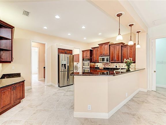 Wonderful opportunity to own this Gorgeous home which is located in the heart of Bradenton on the over half an acre lot and the most private lake view. Upon entering through the brick driveway you will be welcomed into the charming home of 4 bedrooms,3 baths plus den with high ceilings, living area and dining room, with tile floors throughout the kitchen that includes 42" dark cherry cabinets and granite countertop and all stainless-steel appliances such as refrigerator and wash and dryer are about one year old and and New air-conditioning installed this year. The windows are upgraded and are impact resistant for hurricane protection. Fabulous home ideal for family living and entertaining, beautiful setting with mature landscaping and outdoor kitchen. This beautiful home is located in Country Meadows great Subdivision with NO CDD, deed restricted with low HOA fees as $315 semi annual, close to 1-75, shopping mall, restaurants, medical facilities and minutes away from Lakewood Ranch area. This exquisite home is ready to move in and has it all to enjoy Florida lifestyle.