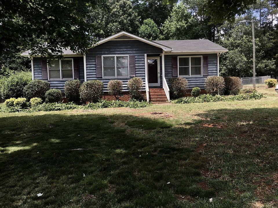 This Charlotte one-story home offers a porch, a deck, ceiling fans, a kitchen pantry, and backyard storage shed.