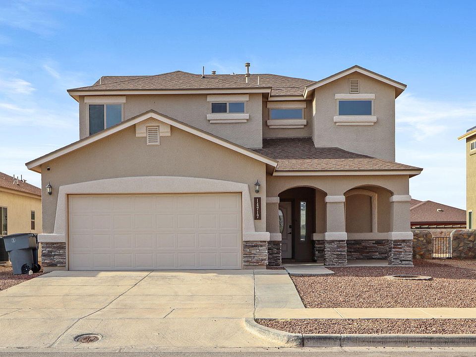 This home features a well designed floor plan.The downstairs area consists of a spacious living area with an open kitchen and dining area that is perfect for relaxed living. The kitchen has stainless steel appliances and granite counter tops. Downstairs there is also a laundry room that leads to the garage and a 1/2 bath. Upstairs there are 3 spacious bedrooms and two full baths. The backyard is beautifully landscaped with a pergola and fire pit perfect for entertaining! The home is near Zaragoza where you'll find plenty of restaurants, shopping and easy access to Loop 375. Home is available for move in November 3, 2025