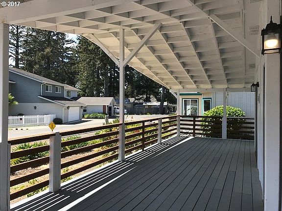 LOOK NO FUTHER! AFFORDABLE BEACHSIDE living. This home sets one back from OCEANFRONT homes. You get decent VIEWS of OCEAN with DEEDED EASY BEACH ACCESS located only 3 homes away from this 3 bedroom/ 2 1/2 bath manufactured home. Open floor concept in Living, kitchen and dining area. Freshly painted inside/outside and a wonderful covered wrap around deck for outdoor/BBQ gatherings. Roomy detached 2 car garage and ample parking for RV!