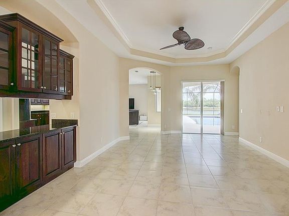 You will be proud of your serene and relaxing view. Imagine sitting on your screened lanai with palm trees waving in the breeze, overlooking the water with deer and wildlife in the background preserve...all on a premium cul-de-sac. Quiet, no traffic and safe â You can feel comfortable, relaxed and secure! If that is not enough, all year round you and your family can graduate to relaxing in your 32â heated Krystal-Krete surfaced (salt) pool and let your tension melt away. This bright, 2750 sqft, 4 bdrm, 3bth home has 10ft trey ceilings with an open, split floor plan and spacious 3-car(plus) garage; all set back on a half acre.Photographs canât do it justice! Feel unencumbered and uninhibited to create new and old favorite delicacies in the large upgraded kitchen. The kitchen includes stainless steel appliances, beautiful hardwood cabinets and granite countertops throughout. The outside features mature palm trees and a spacious lanai area plumbed for an outdoor kitchen and entertaining.
