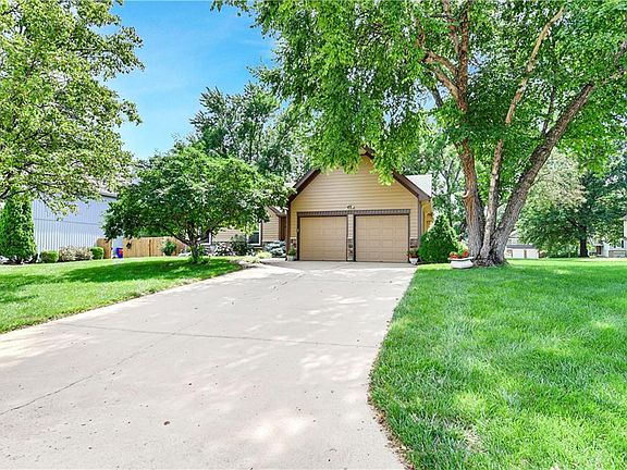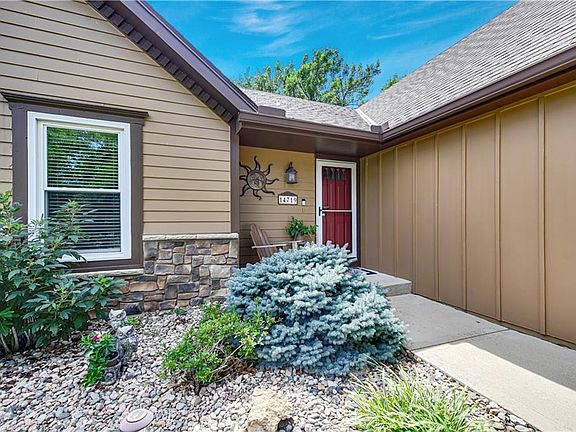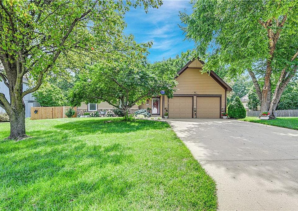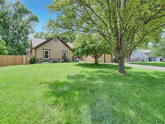 DARLING LENEXA RANCH FOR SINGLE LEVEL LIVING! * This home is so CHARMING!! * SPACIOUS, OPEN living room with hardwoods, wood ceiling beams, a brick fireplace with gas logs, ceiling fan, and built-in features * Large EAT-IN KITCHEN with BRIGHT cheery cabinets, a nice pantry, lots of counter space to make food prep a breeze! * Formal dining room with hardwood floors and a BEAUTIFUL WOOD INSET feature on the ceiling leads out to a FABULOUS PATIO & BACK YARD! * All three bedrooms are on the main level - they are all carpeted with ceiling fans and the primary suite has a nice walk-in closet * The hallway is also hardwood to minimize traffic patterns * The back yard is just AMAZING!! - Fenced for PRIVACY, river rock landscape beds for EASY MAINTENANCE (no more mulching every year!), a darling little shed that could be a storage space or playhouse - so many pretty flowers and seller is leaving all the large pots so it will be beautiful and cozy from day one! * LARGE FULL BASEMENT has tons of storage space with really nice BUILT-IN SHELVING, plus the window wells have been replaced * Sprinkler system * NEWER roof * NEWER exterior paint * NEWER gutters and downspouts & cover guards * French drain system * FABULOUS location near Lenexa City Center with easy highway access * DON'T MISS THIS AMAZING HOME!