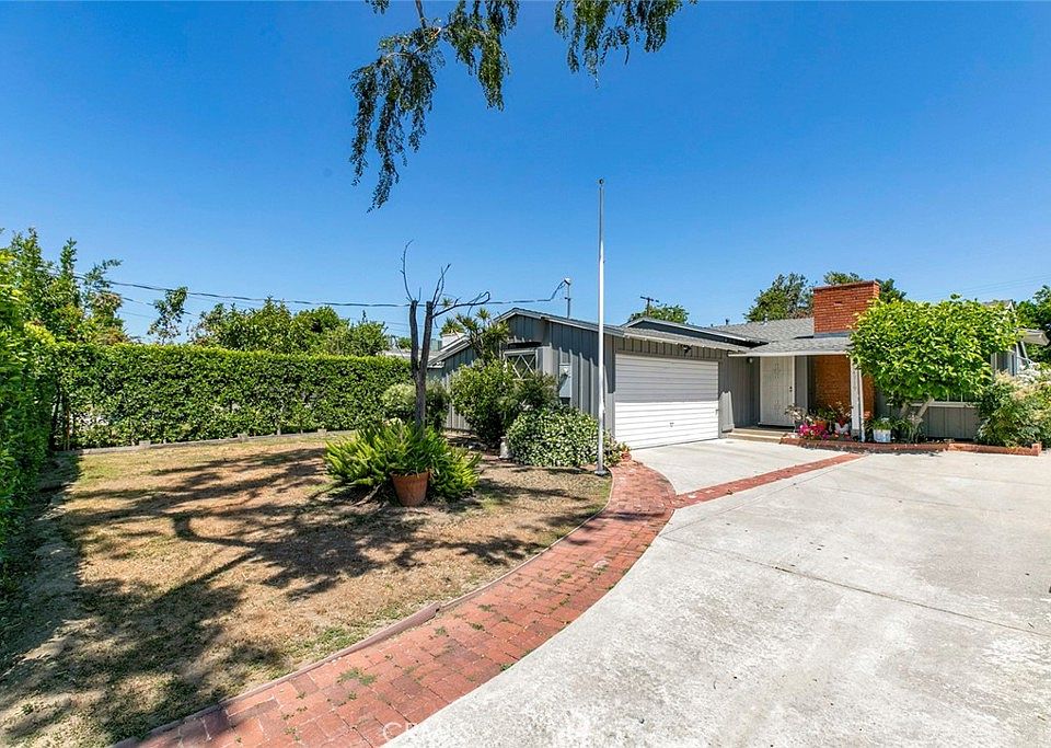 Up front, the spacious driveway accommodates parking for up to 4 cars, in addition to the attached 2-car garage—perfect for an ADU conversion opportunity (buyer to verify). The landscaped front yard features an array of colorful flowers that enhance curb appeal and create a warm welcome.