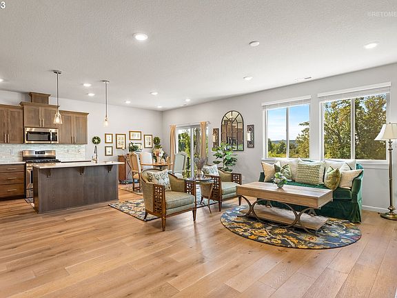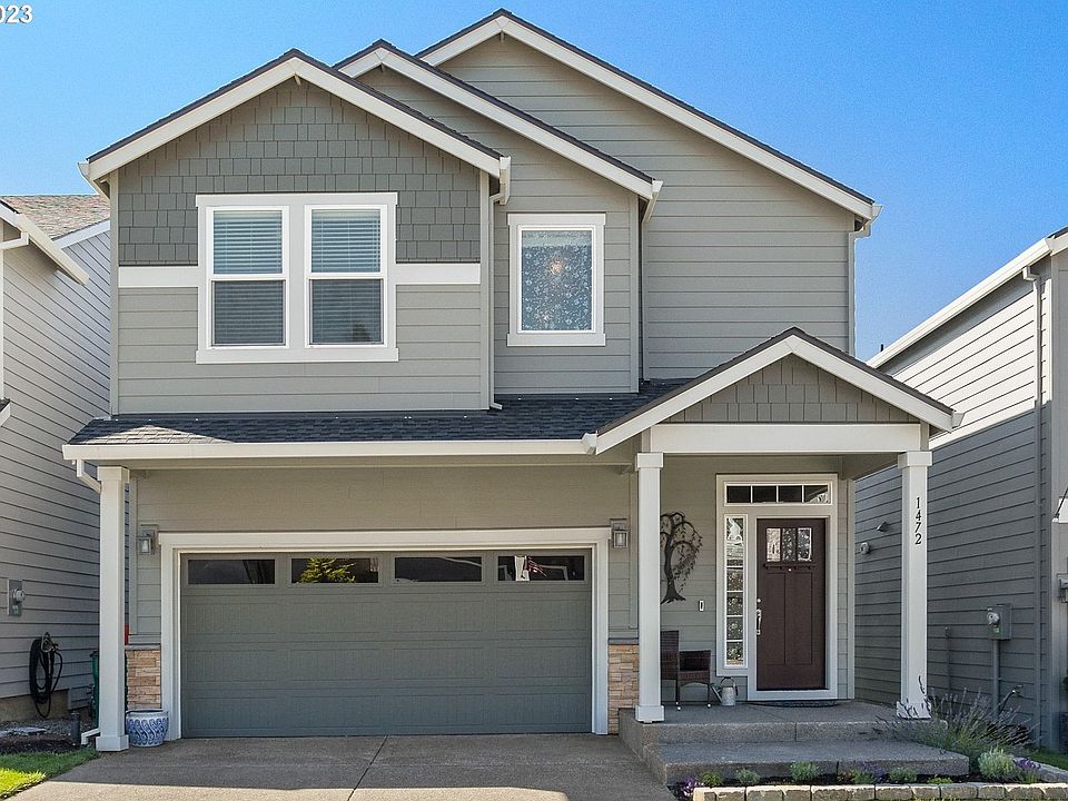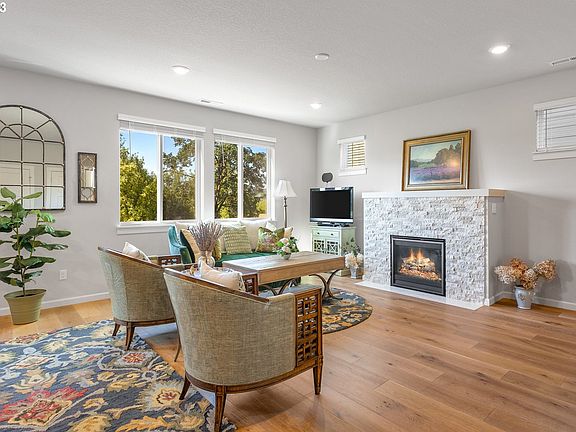 Beautifully designed & meticulously maintained Craftsman backing to nothing but the sights & sounds of nature! Nestled in Forest Grove's Gales Creek Terrace community, this charming residence will leave a lasting impression. Main level great-room floorplan combines living, dining, & kitchen areas into one cohesive living space. Efficiently designed kitchen with quartz countertops, tile backsplash, gas cooking, stainless steel appliances, island with eating bar, & pantry. Cozy living room with gas fireplace, modern stone surround, & views of the creek from South facing windows. Tasteful & elegant engineered hardwood flooring throughout main level. Primary suite outfitted with tile countertops, tile backsplash, dual sinks, & walk-in closet. Upper level includes laundry, three additional bedrooms, & shared bathroom. Central A/C, EV charger ready, tankless water heater, and smart home features including Ring doorbell and smart lock. Entertainer's backyard with trex decking, raised beds, & panoramic views of beautiful Gales Creek. Located minutes from downtown Forest Grove, schools, & Henry Hagg Lake.