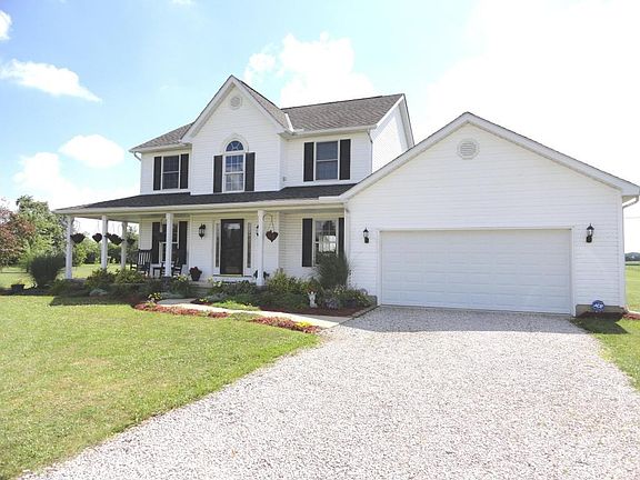 This one has it all. 6.33 acres of paradise with over 2000 square feet (auditor's site is incorrect) of living space. Very open floor plan with beautiful kitchen overlooking eating area and family room with fireplace. Gorgeous hardwood floors in kitchen and dining areas. Spacious den set off from rest of home for quiet activity. Upstairs features a huge master bedroom with large soaking tub and shower. Two additional bedrooms and a hall bathroom finish the rest of the upstairs. Giant finished basement features great living area plus an additional room and an egress window for extra safety. There is a patio in the rear of home and also a huge outbuilding for storage and additional parking with a set up to have electric and water service.