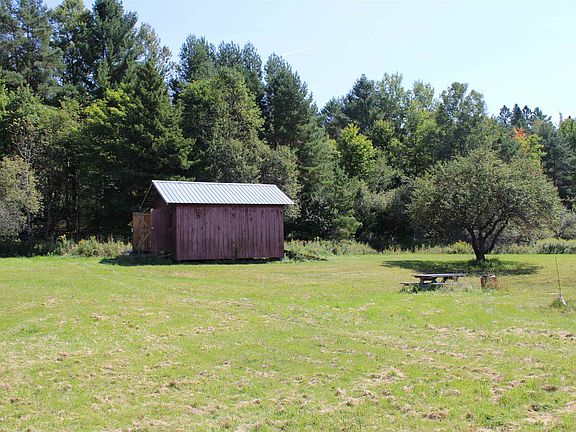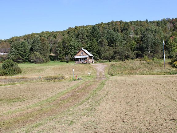 Located in a beautiful rural setting on 56 acres of open and wooded land this cozy post and beam home feels warm and welcoming--you can feel the stress fade away as you take a breath of fresh mountain air and enjoy the scenic views. The home has an open floor plan on the 1st floor with a box wood stove in the center kitchen, dining area and living room area, a vaulted ceiling gives the area a sense of spaciousness. There a Rinnai type propane heater if you don't want to use the wood stove, the downstairs bedroom has built in bunk beds, tje upstairs is a loft type bedroom that accomodates several family members or guests. The detach garage has storage for 4 snowmobiles or ATV's--the front porch is ideal for taking in the beauty of the area