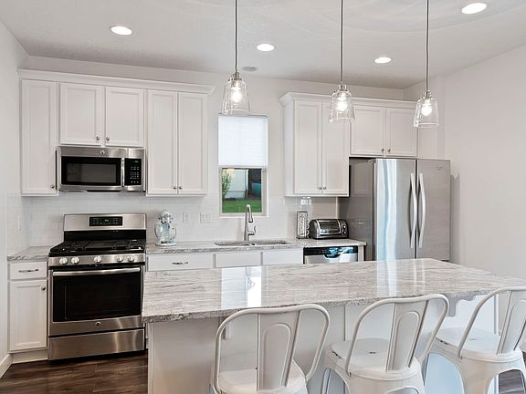 Bright and roomy row-end townhouse in new East Layton neighborhood. Fresh white kitchen has beautiful granite countertops, large island and five-burner gas range with griddle top. Three bedrooms including large master suite with walk-in shower and walk-in closet. Loft/office landing and convenient upstairs laundry room. Painted two-car garage with LED lighting. Easy access to shopping, Interstate 15 and Highway 89.