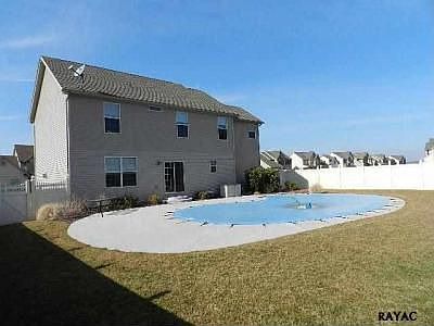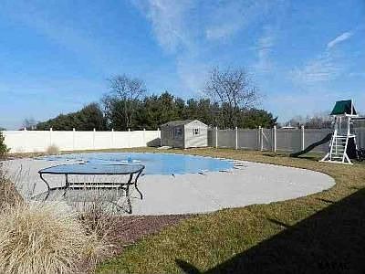 This gorgeous home is nestled on a nice lot in Little Creek Farms. Perfect for entertaining with the PVC privacy fenced yard, patio and inground heated pool. The pool is a Anthony & Sylvan concrete pool, kidney shaped with dimensions estimated at 18' x 36'. The pool comes with a low chlorine pool filter, an automatic robot pool cleaner, winter cover (child safety cover) and goes from 3' to 6' in depth. Entering the home you will be greeted by the two story foyer with hardwood flooring. There is an office with wall to wall carpet. The formal dining room has hardwood flooring, chair rail and a chandelier. The eat-in kitchen features granite counters, an island, ceramic tile back splash, dishwasher, garbage disposal, pantry closet and sliding door to the patio. There is a powder room with pedestal sink and a laundry room with vinyl flooring. The family room has wall to wall carpet, a ceiling fan and a gas fireplace. Ascending to the second floor you will find two bathrooms, a hall linen closet and four bedrooms. The master suite features wall to wall carpet, a cathedral ceiling, ceiling fan with light, linen closet, a walk-in closet, private bathroom with vinyl flooring, double bowl vanity sink, shower and soaking tub. The first two bedrooms include wall to wall carpet, a closet and ceiling light. The third bedroom has wall to wall carpet, a walk-in closet and ceiling fan with light. Descending to the full concrete basement you will find the utilites, Egress window, 200 amp electric service and ample storage. Some additional items are a new shed with solar panel for light, 19.8 W x 20.6 deep two car garage and a maintenance free swing set.