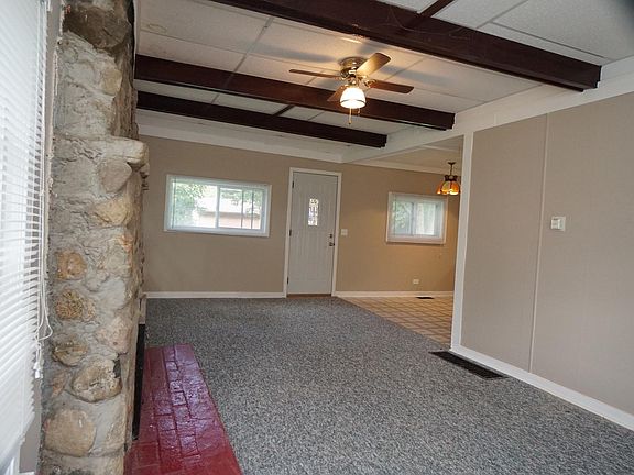 2 bedrooms. 1 bath, big open kitchen LR with Fireplace, no basement. 2.5 car garage plus shed, Screened in patio off back of garage, BIG LOT. .cottage feel. Painting is done cleaning will be completed by next week. New tub surround going in also