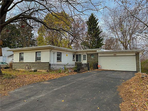 Ranch 1431 sqft, 3 bd/1.5br in great location close to highways and shopping centers. Recent updates: newer windows, water tank 2020, HVAC high efficiency furnace 2017, full basement insulation. All exterior walls with stucco finish and some natural stone in front, 2 car garage. Basement is very dry and has walk out with fenced enclosure under big deck. Heavy duty air compressor connected to the garage and one refrigerator are negotiable, other appliances including second refrigerator stay.