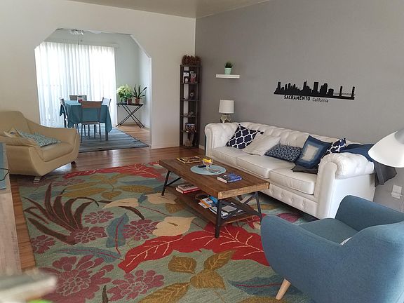 Sorry -- NO PETS Fully Remodeled East Sac BUNGALOW walking distance to East Portal Park Refinished HARDWOOD FLOORS in SPACIOUS Living & Dining Rooms; Central Heat&Air Separate FORMAL DINING Room with sliding glass door opening onto a sunny yard and redwood deck Fully REMODELLED Stainless Granite KITCHEN; Silent series DISHWASHER, Stainless Side-by-side Stainless Chefs gas range, Cherry cabinets, Slate tile floors, Vented stainless microwave Remodeled Hall bath with porcelain vanity and slate tile floor. Updated LED recessed lighting Attached 1 car Garage w/ new available appliances; Available alarm, CH&A Backyard dining patio in DG Granite garden; Sunny exposure perfect for the urban garden Walk to East Portal Park, The Shack, CSUS, All area hospitals, Trader Joe's, and many restaurants Tenant pays water, sewer and garbage Owner pays for gardening
