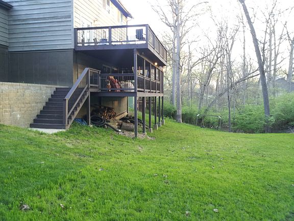 Fully updated 1 1/2 story home backs to woods with beautiful rustic hardscraped hardwood floors, 6 panel doors, new crown molding and trim, Recess lighting and dimmer switches in every room. Open kitchen, stainless appliances, under cabinet lighting, and granite counters. Main floor master suite with updated bathroom. The second floor offers 3 bedrooms with extra bonus room. All 3 bathrooms have been updated and upstairs bath has jacuzzi tub. New carpet and wainscoting in upstairs bedrooms. All new windows and exterior doors. 2011 exterior paint and soffit bead board. 2009 architectural roof. 2011 landscape update including retaining walls, sprinkler system, extra wide driveway and accent lighting. 2010 2 story 900 SF deck. Basement bar redesign and install 2012 including custom marble counter tops, stone columns, and 100 " projection screen.