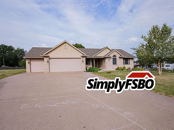 Welcome home to this spacious Ranch-style gem offer 3 bedrooms, 3 bathrooms, and an OVERSIZED attached 3-car garage. Nestled in the charming Lake Ridge Addition, just a stone’s throw from West Lake Park, this residence offers an exceptional living experience. Step inside and be greeted by a vaulted open concept great room featuring a gas log stone fireplace, creating a warm and inviting atmosphere. The well-appointed kitchen comes complete with a pantry, convenient breakfast bar, sleek solid surface countertops, and stainless steel refrigerator, perfect for culinary enthusiasts. Adjacent to the kitchen, you’ll find a delightful dining area with a wooden slider that opens onto a covered porch, extending your living space into the fenced-in backyard. Imagine enjoying your morning coffee or evening dinners in this peaceful outdoor retreat. The master bedroom is a sanctuary of comfort, boasting a spacious walk-in closet and an elevated double sink vanity that offers both style and convenience. The attached bathroom ensures your daily routine is a breeze. The basement, ready for your personal touch, features daylight windows and a rough-in for a bathroom, allowing for endless possibilities to transform it into your dream space. Last but certainly not least, the impressive 3-car attached garage is a true standout, offering over 1100 square feet of storage and workspace. Whether you’re a car enthusiast or in need of ample storage, this garage has you covered. Don’t miss your chance to make this exceptional property your forever home. Contact us today for a private showing and start living your dream in Lake Ridge Addition.