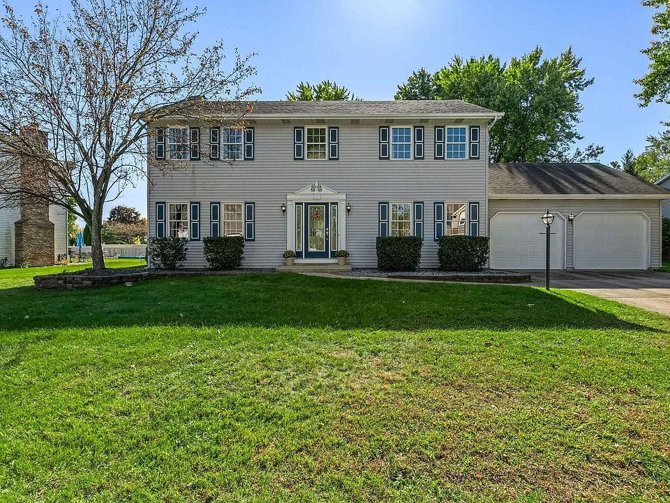 Presenting a classic 2-story in Juday Creek Estates, a beautiful golf course community and one of the most centrally located neighborhoods in Granger. Enjoy the ease of being minutes from the Mishawaka shopping district, the large array of dining options, the toll road access, yet a short drive to Notre Dame or DTSB. This 4-bedroom 2.5 bathroom home is ready for its new owners to call it home for the holidays! The main level offers a cozy den, hardwood flooring, an open layout, a bay window, and an updated kitchen with custom cabinets, granite countertops, and new appliances. You will love the huge butcher block island for preparing meals or for the best spot where guests tend to linger and mingle. The finished lower level adds another large gathering space and a super fun bar great for entertaining. The back yard has a patio with a hot tub and an adorable shed for extra storage. The furnace and air conditioner were both just replaced in 2021 which offers some peace of mind for years to come for mechanicals. Don't delay to schedule your private showing!