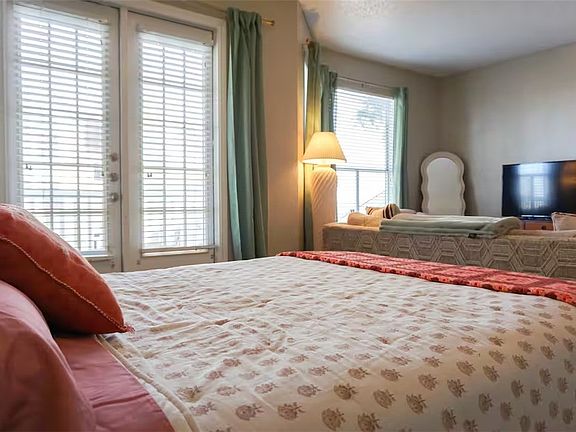 This vintage vibe studio/condo is located on the second floor of the very popular Beach Club Condominiums. Incredible location, just a 5-minute walk to the beautiful white sands and blue water at the Whitecap Beach on North Padre Island. This cozy home has such a beachy feel with lots of windows and French doors that lead out to a spacious covered patio. There is a fully equipped kitchen with everything needed to prepare a gourmet meal, a dining nook and lots of living/bedroom space with a walk-in closet. This unit easily sleeps four with room for a sleeper sofa and a queen sized bed, night stands, end tables and more! Shared community amenities include a shady, well maintained pool, large relaxing gazebo, hot tub, sauna, gym and even a lake and pier! There is an outdoor shower near the pool, and laundry facilities are available inside the clubhouse. Additionally, there is assigned parking and lots of extra guest parking near by. Call today for a private showing of this little jewel on the Coast!