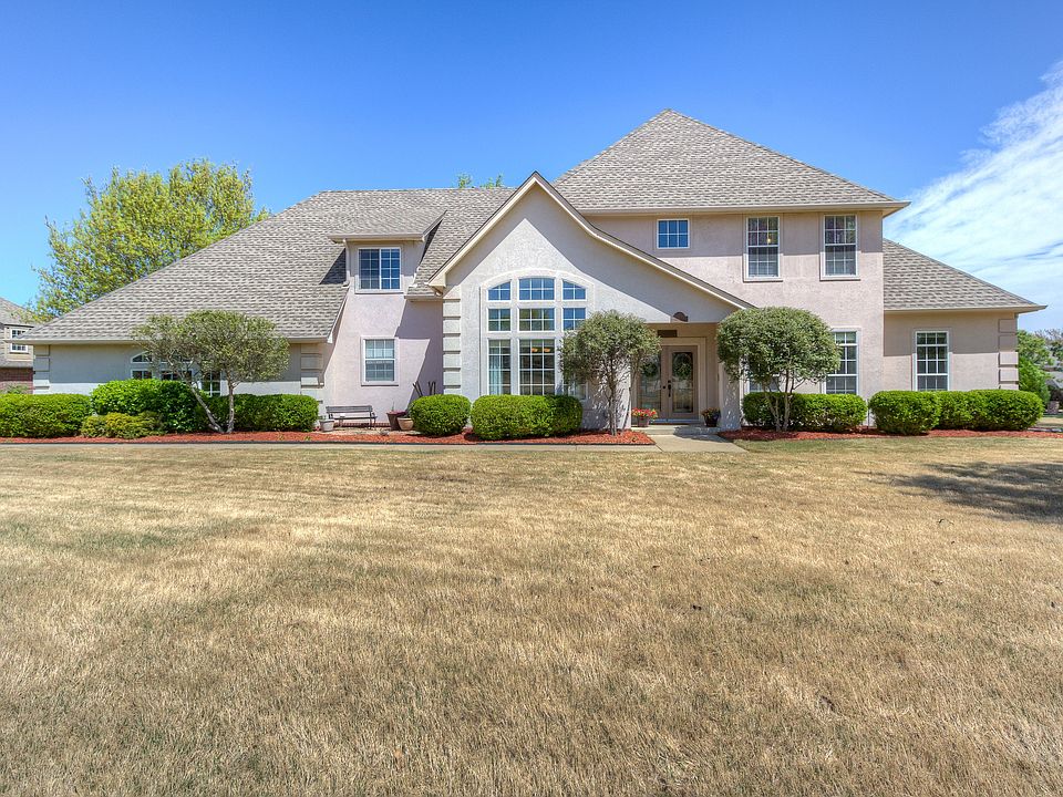 Spacious 5 Bedroom, 4.5 Bathrooms & 3 car gar home in the much desired White Hawks Community! The mstr suite & one bedroom located down & remaining bedrooms up. The newly renovated kit has island, butlers pantry & eat in dining area. Inviting family room w/ frplc, office with built-ins & sep din room, a media room plus bright & open Florida room. New int pnt & upgrades in mstr bath. The lg upstairs gamerm has half bath. House is situated on lg corner lot w/ mature trees in great neighborhood ~Bixby sch!
