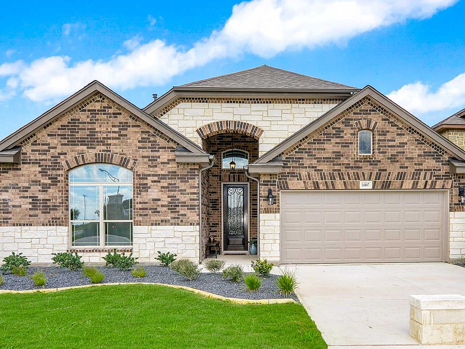 The Madrone is a full featured 1-story with plenty of room and lots of bedrooms. This home has it all?A flex room makes an ideal home office, exercise or hobby room. A separate media room allows for great home theater. There is also a formal dining room off the main hallway, in addition to the dining area off the gourmet kitchen and open family room. A large covered patio provides outdoor living space as well. The master suite features a separate walk-in closet and large master bath with double size shower that includes a built-in bench, a double vanity and sinks, and a garden tub.