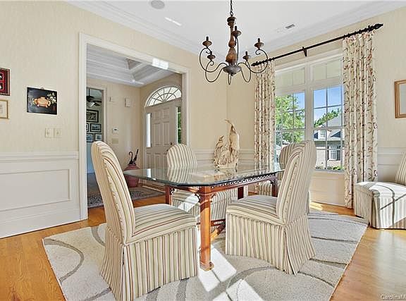 RARE RANCH in The Traditions section of Ballantyne Country Club! This exquisite home has not missed a single detail starting w the large "rocking chair" front porch that overlooks the gorgeous tree-lined st. This home boasts an unbelievable kitchen/pantry, formal dining rm, eat-in kitchen and an inviting great room. There is a split bedroom flr plan so the mstr is nicely tucked away for its private retreat. The mstr bedrm is large w dual closets, built-in safe, and a perfectly sized bathroom w all the amenities you need! The 2nd bedrm is connected to a private en suite. The 3rd bedrm has been converted to a study but certainly can be converted back w its own access to the guest bathrm. The STUNNING garden will take your breath away w the lovely loggia and dining patio. The water feature just adds to the feeling of a relaxing retreat. A cozy computer niche is also a hidden surprise. The storage is spectacular! This is a MUST SEE for your most decerning buyer! This will not disappoint!
