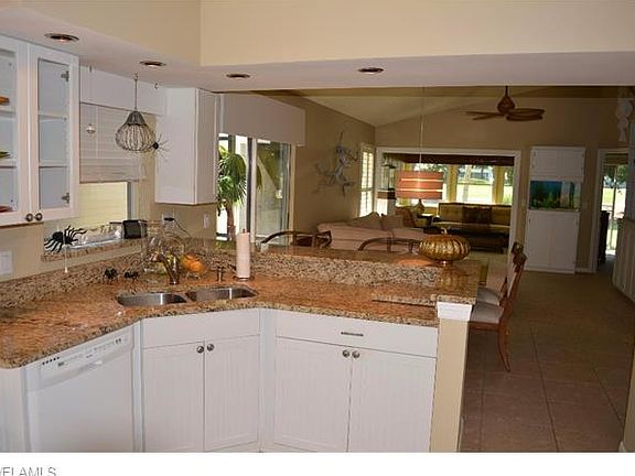 Shows like a Model! Condo Conveniences with Single family feel, Southern exposure for winter sun, Vaulted ceilings living and master bedroom, Light and bright Sun Room with double action privacy sun shades, Kitchen opened up with newer white wainscoat kitchen cabinetry, Granite counters and recessed lighting, Newer appliances throughout, Newer bath cabinetry, counters, sinks, extra storage & custom lighting, New tile flooring kitchen and dining area, Custom window treatments and upgraded fans & lighting, Living room Aquarium book case and entertainment cabinetry Living room, Flat screen TV's negotiable, Private lanai cage and landscaping, Brick paverstone Entry Patio, New AC in and out 2014. 186 slip deep water Marina with slips available for lease or purchase. Some amenities herein available but not offered. Living area sq. ft. per developer floor plan.