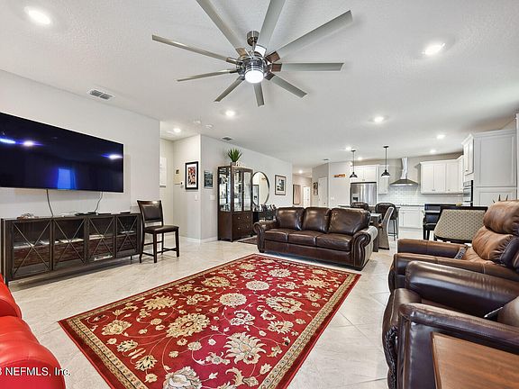 This former model smart home is in pristine condition with all the builder upgrades and additional upgrades by the homeowner. Perfect floor plan for work from home. Bedroom/Office space directly off the front door allows for privacy on important zoom calls. 2 additional bedrooms with bathroom easily accessible and large master with garden tub and separate shower. Open concept living, dining and kitchen area leads out to the new screened in Florida room with pavers and ceiling fans. Kitchen is well appointed with granite counters and Whirlpool Appliance package. Center island has plenty of room for barstools. Designer furniture and artwork from retailers like Pottery Barn most of which is negotiable. Front and backyard have newer St. Augustine sod and landscaping. White vinyl privacy fence fence