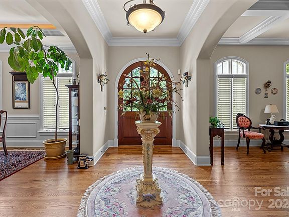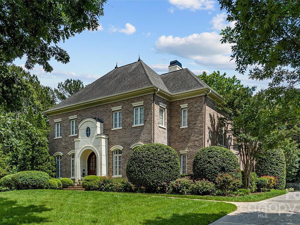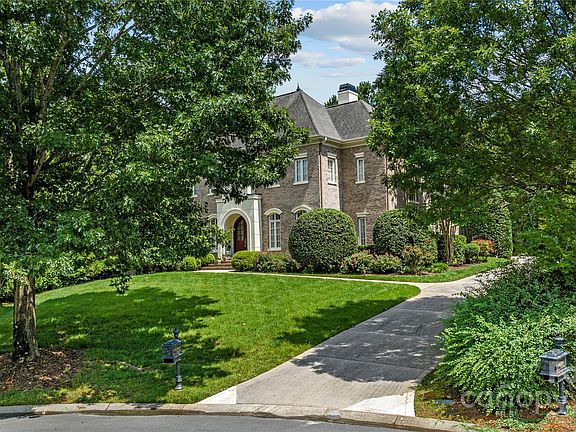 This exceptional two-story home with double mahogany doors greets you as you step into this custom home in Ballantyne Countr Club. Home situated in quiet cul de sac big lot custom built in 2003 by Simonini Builders boasts a spacious layout with five bedrooms and four full & 1/2 baths. Primary room down. Four BR with ensuite baths up. Formal living & dining rooms plus great room with fireplace and built ins. Media room upstairs which is perfect for entertaining or multi-purpose use. Spacious attic and three car garage. It boasts stately features like quality millwork, extensive crown moldings, uniquely carved archways, tray ceilings in the dining room, great room and PR, coffered ceiling in living room. Kitchen open to breakfast and GR has warm wood cabinets with granite counters, an island, double ovens, Bosch dishwasher, Monogram fridge, Thermador gas cooktop with venting. Walk-in pantry. 10ft high ceiling main. Enclosed screened porch backyard. Sound system in porch, GR, & kitchen.