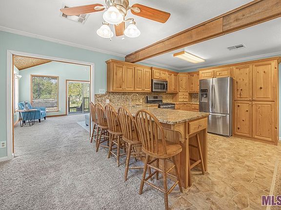 This charming waterfront home/camp offers the perfect blend of relaxation and outdoor entertainment. Nestled on a canal just off the Amite River, this 3 bedroom, 1.5 bath home is a true gem. Spacious enough to accommodate family and guests, this home is perfect for entertainment. The kitchen features custom cypress cabinets, granite countertops with plenty of space for meal preparation. The massive living area has wall-to-wall windows allowing views of the water from every angle. Enjoy breathtaking sunrises and sunsets from your own backyard while relaxing by the water. 4-car covered parking and an abundance of covered area allow plenty of room for the family fish fry or crawfish boil. Two dumbwaiters located by entryways provide convenience to bringing groceries upstairs. A covered boat lift protects your watercraft from the elements with access to the boat launch. This property provides the ideal retreat for water enthusiasts and those seeking a serene escape. Call for your private showing today! *Structure square footage nor lot dimensions warranted by Realtor.