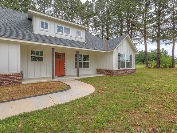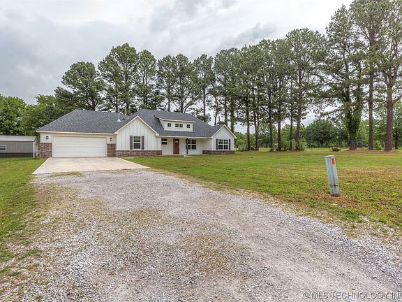 Well-maintained 3 bedroom in Sequoyah schools on half an acre! Beautiful farmhouse design surrounded by trees. Split bedroom floorplan, large and open kitchen with granite counters and white cabinets with pantry and coffee bar, laundry room with built-in mud area, large primary bedroom with an attached suite including dual vanity, walk-in shower, and walk-in closet, aerobic system, covered front porch and covered back patio, 2 car garage, country living close to town.