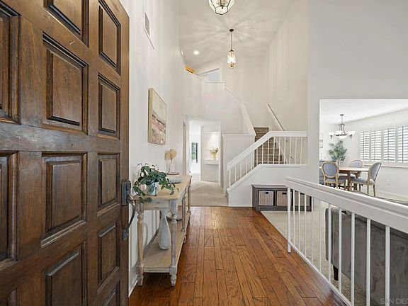 Desirable Rancho Arbolitos home. Bedroom & full bathroom on first floor. Flexible floorplan. Bonus room has closet so is 5 bedroom or closet has a window and is large enough to be a separate office/craft room. Vaulted ceilings, 3 fireplaces. Backyard ideal for entertaining with pool & unique hillside garden path providing peaceful spots to enjoy sunset and mountain views. Located directly across from Silverset Park, this home offers abundant interior space with privacy and natural beauty outdoors. Located in the highly desirable Rancho Arbolitos neighborhood, this warm and welcoming home offers the space, flexibility, and outdoor lifestyle today’s families are looking for. There is a bedroom and full bathroom on the first floor, ideal for guests, multigenerational living, or a home office. The bedrooms are generously sized and vaulted ceilings create an open, airy feel, while three fireplaces offer cozy gathering spots for family time, movie nights, or quiet evenings at home. With multiple living areas, there’s plenty of room for everyone to spread out while still feeling connected—perfect for busy households that value both togetherness and privacy. Step outside to a backyard designed for making lasting memories. Whether it’s pool days, weekend barbecues, or casual get-togethers, this outdoor space is built for entertaining and everyday fun. Beyond the pool, a unique, garden path winds up the hillside, inviting exploration and imagination. Along the way, you’ll discover peaceful spots to relax, unwind, and take in beautiful sunset and mountain views—an ideal retreat after a long day. Adding to the home’s exceptional appeal, it’s located directly across the street from Silverset Park, offering easy access to green space, play areas, and outdoor activities just steps from your front door. With ample interior living space, privacy, natural beauty outdoors, and a prime location, this home is a rare opportunity to enjoy comfort, and a true sense of home in Poway’s Rancho Arbolitos.