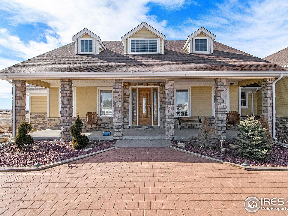 Welcome to your Dream Home w/ Magnificent Views of the front range Mountains, stunning 6 Beds/5 Ba home seamlessly blends country charm w/ elevated modern convenience. Savvy Open Plan w/ immaculate ready-to-entertain Kitchen, like new LG Appl's. Dual convection ovens, eat-in kitchen area, plus dining areas, Hrdwd Floors, office w/ whimsical circular stair access to 2nd floor library/relaxation space overlooking the great room. Master Suite w/ spectacular Walk-in dual shower, copper basins, heated floors, & well-conceived Walk-in Closet area. On opposite side of house are 2 guest bedrooms w/ baths. Take the stairs up to a spacious bonus room w/ custom built-in pool table including all equipment, chairs, built-in Cab's, Bar refrigerator, plus, above the OS 3 Car Garage. Take the stairs down to discover another lg open area w/ 2nd Pool Table, 3 additional Bedrooms (one nonconforming) gorgeous 3/4 Bath, storage, mechanicals, etc. Home enjoys energy efficient & safety features inc. Rolled/blown & foamed-in insulation, "on demand Water Heater", newer dual GFA system, Jeldwen windows, Radon mitigation system, etc. Outside, enjoy gorgeous Mountain Views from your own sparkling pool and spacious Deck Entertainment areas. Property also includes a massive 46' x 100' Outbuilding complete w/ its own heated 1/2 Bath, 220 Service, separate meter, and 2 Overhead Doors. 50 Amp RV service to west side. 2nd Storage Bldg/Loafing Shed west of pool. Well allows for 2 Lg Animals. No HOA, NO Metro District! Schedule a private showing soon!