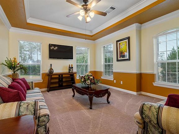 ABSOLUTELY A BEAUTIFUL HOME ON AN AMAZING PIECE OF PROPERTY! SURROUNDED BY A GORGEOUS BLACK IRON FENCE AND GATE. LOCATED 30 MINUTES FROM DOWNTOWN HOUSTON. THIS GORGEOUS ONE-STORY HOME HAS IT ALL - SPLIT FLOOR PLAN W/4 BEDROOMS (VERY LARGE ROOMS), 3 BATHS - BEAUTIFUL TILE THROUGHOUT (EXCEPT IN THE BEDROOMS, WHICH HAVE PLUSH CARPETING), & A GORGEOUS GAS LOG FIREPLACE. ISLAND KITCHEN WITH GRANITE COUNTERTOPS AND 12' CEILINGS, GAS COOKTOP, TONS OF STORAGE/COUNTER SPACE, UNDER CABINET LIGHTING, & ALL CABINETS ARE A BEAUTIFUL COLOR. LIVING ROOM & DINING ROOM HAVE AMAZING 12' CEILINGS AS WELL. SPACIOUS PRIMARY SUITE W/11' CEILINGS OVERLOOKS THE HUGE BACKYARD. PRIMARY BATH HAS A LARGE WALK-IN CLOSET & A LARGE BATHROOM W/DUAL SINKS & SEPARATE VANITIES. ENJOY THIS BEAUTIFUL YARD SITTING ON A LARGE COVERED PATIO, PERFECT YARD FOR A SWIMMING POOL! PROPERTY IS FULLY FENCED WITH AN AUTOMATIC DRIVEWAY GATE. DON'T MISS THIS HOUSE, IT WILL NOT LAST LONG, PRICED TO SELL!!!!