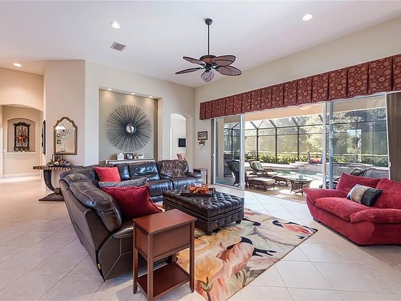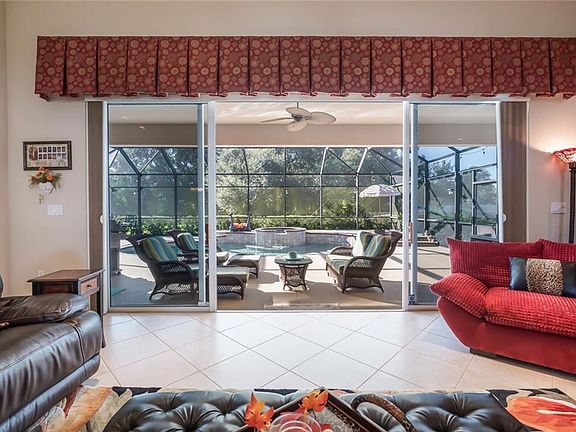 Stunning Smart 3-bedroom 3 bath home. Possible VA assumable loan. While you're away adjust the temperature in your home with Smart App, turn on the sprinklers with your Smart App, heat up Spa or Pool with your Smart App. Enjoy the Rainmachine forecast sprinkler(Smart App) which reduces lawn watering when it rains and allows for remote control of sprinklers, plus well groomed landscaping, an over-sized paver driveway w/3 car garage & tile roof. Enter the crystal lead door to the elegant dining/living area amazing view of outdoor entertaining & the custom upgrades surround you-including inset walls, beautiful diagonal tile, plus an spotless kitchen that includes up-graded wood cabinets/pull out drawers, stainless steel appliances, granite counter-tops, a walk in pantry, breakfast bar & non-stop views of the massive pool deck. The Owner's Suite features two walk-in closets & Mermaid Etched Shower, dual vanities, fabulous garden Bath/walk closet w/sliders leading out to the outdoor living space which has an impressive full expansive view. 2014 Air Conditioner with Nexia smart home app which allows remote control of the thermostat. Pentair Screen Logic system for remote control of the heated Solar & Electric Saltwater pool and spa includes a lounging sun shelf, spectacular night time lighting, & dramatic sunsets. Minutes to I-75, excellent schools, fine dining & medical facilities. Low HOA fees, NO CDD fees, Excellent schools, nearby shopping.