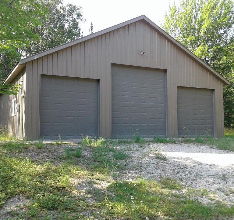 Four beautiful wooded lots located on Whitefish Point Rd and Bear Road that include a large 40 x 40 pole building. The structure has 100 amp electric service, two large overhead doors, cement floor, and is in excellent condition. There is an easement enabling you to walk to the shore of Whitefish Bay. The vacant property directly East of this property is for sale and could also be your beach front property.