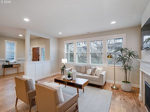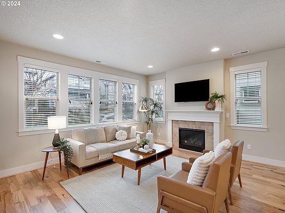Stunning home in Bethany Creek Falls Community. 4 bedrooms and 2.1 bathrooms. Light and bright open concept. Main level features; great room w/cozy fireplace, kitchen with S/S appliances, eat-in island, dining area, access to the side yard and two car garage. Primary suite has vaulted ceiling, walk-in closet, bathroom with soaking tub, double sinks and shower. Low maintenance paved side yard. Step outside and enjoy multiple playgrounds and walking trails. HOA includes the front yard maintenance, outdoor pool, gym, and club house. Move in ready. Central A/C, blinds, TV, refrigerator, washer& dryer included. Close proximity to Intel, Nike, HWY 26, Bethany Village, The Streets of Tanasbourne. Sato- Stoller- Westview schools.