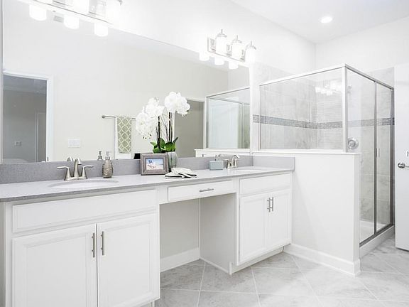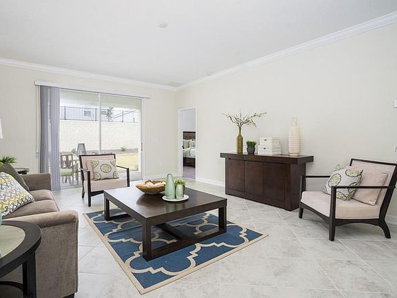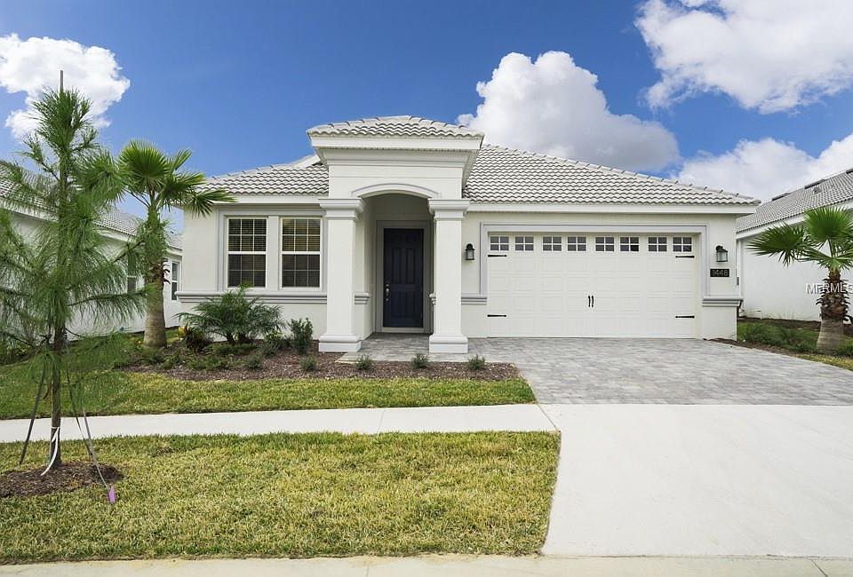 This impressive three bedroom, two bathroom home features a welcoming front porch and a two car garage. The open kitchen overlooks the combination dining and family rooms. The spacious master suite includes a separate bathtub and shower as well as his and her sinks. We have a limited release of NEW homes that sit on well-maintained sites with golf and conservation views, perfect for relaxing with friends and loved ones. With "Everything's Included", luxury and value go hand in hand. New highly energy efficient homes feature 42" maple cabinetry, quartz countertops in both kitchen and bathrooms, stainless steel appliances, state of the art security system faux-wood blinds, and expansive covered lanais to enjoy your gorgeous golf and conservation views and much more! -For limited time, take advantage of our lender based incentives! Enjoy the resort style pool, spa, tennis, basketball, golf, fitness center, on site concierge, and much more. CHAMPIONS GATE RESORT ORLANDO OASIS CLUB CLUBHOUSE AND WATER-PARK: Amenities will include: Lazy River, Water-slides, Swim-Up Bar, Water Falls, Beach Entry, Spa, Splash Pad, Grill, Bar, Fitness Area, Theatre, Games Room, Tiki Bar and Cabanas. Simply relax by the pool, watch your family have the time of their life. All of these amenities are INCLUDED in HOA.